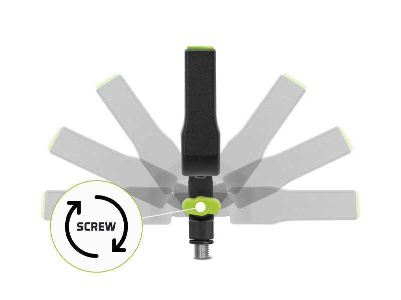 V spodnej časti je na rám pripevnený plastový kĺb s otočným regulátorom, poskytujúci možnosť polohovania držiaku v rôznych uhloch podľa Vašich potrieb a podľa podmienok pri vode. EvaFRONT disponuje taktiež univerzálnym závitom kompatibilným s väčšinou rázsošiek, feedrových držiakov a ramien.