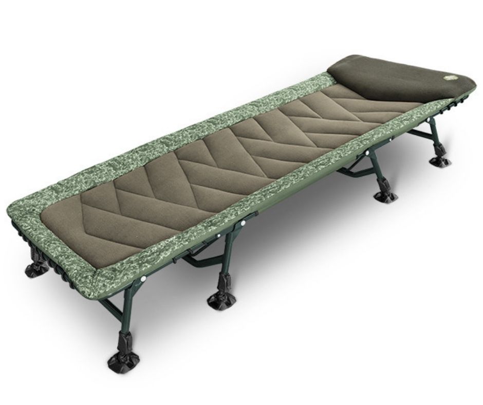 Všetkých 8 nôh je vybavených robustnými, flexibilnými pätkami, čo im umožňuje prispôsobiť sa nerovnostiam terénu. Pár nôh pod hlavou je navyše opatrený zaisťovacím mechanizmom, čo uľahčuje rozloženie lehátka a zároveň zabraňuje neželanému sklápaniu, či posunu.