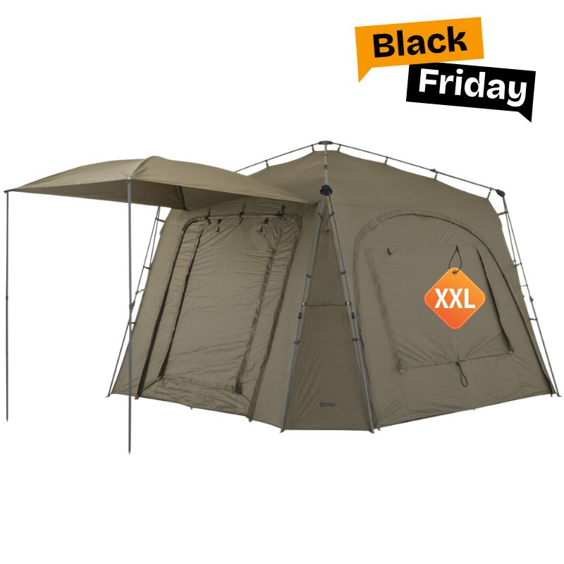 • K přístřešku Base Camp lze pomocí Bivvy Connection Kitu připojit jakýkoli bivak nebo brolly na trhu