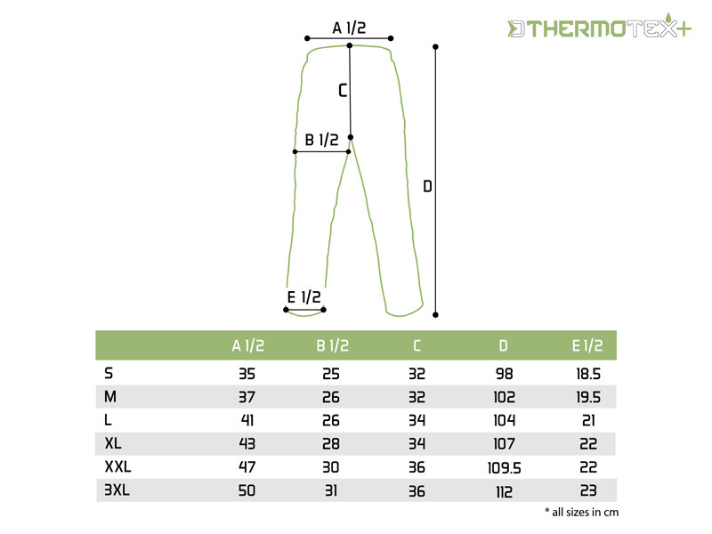 Farebne sú nohavice ThermoTEX Plus+ ladené do tmavej zelenej a čiernej farby so žiarivo žltými prvkami, čím sa stanú nielen užitočnou a vysoko funkčnou, ale aj peknou súčasťou vášho outfitu.