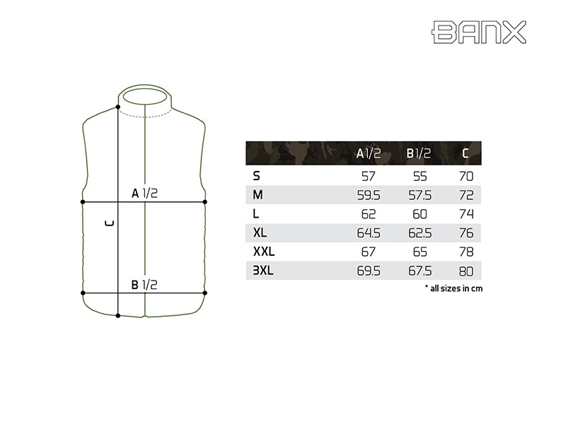 Zapínanie je zabezpečené pomocou kvalitného zipsu, prekrytého z vonkajšej strany tkaninou, čo zvyšuje jeho odolnosť voči vonkajším podmienkam. Na obidvoch stranách sa nachádzajú dostatočne veľké vrecká na ruky alebo pre odloženie potrebného príslušenstva. Vesta Banx disponuje tiež vyvýšeným golierom pre lepšie prekrytie krku a šije pri nízkych teplotách vzduchu.