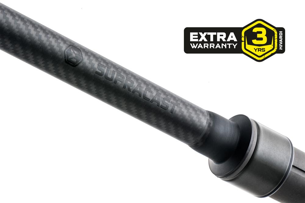 Povrchová vrstva je tvorená prémiovým 1K cross woven carbonom v uhle 45 °. Prút je osadený prémiovými očkami Seaguide s ľahkými SIC krúžkami s priemerom 16mm na špičke a 50mm u spodného očka. Zatmavené FUJI sedlo navijaka, matné antracitové výväzy a zamatovo matný povrch s decentným označením pomocou priamej 3D tlače na blank potešia všetkých kaprárov, ktorí dbajú nielen na skvelé technické vlastnosti, ale aj na luxusný minimalistický dizajn. Na prút je poskytovaná predĺžená záruka 3 roky.