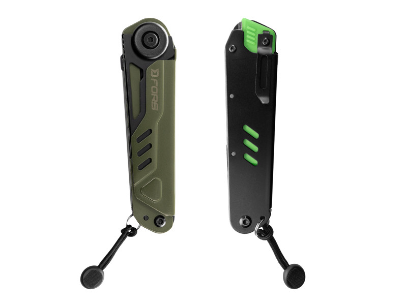 Všetko je navyše bezpečne uložené v pevnom textilnom puzdre, ktoré je pripravené na uchytenie na opasok, takže svoje vybavenie môžete mať neustále po ruke. Nôž FORS šetrí miesto vo vašej výbave a zároveň poskytuje komfort, ktorý oceníte pri pobyte v prírode, turistike, kempovaní alebo bežnej údržbe v dielni či aute.