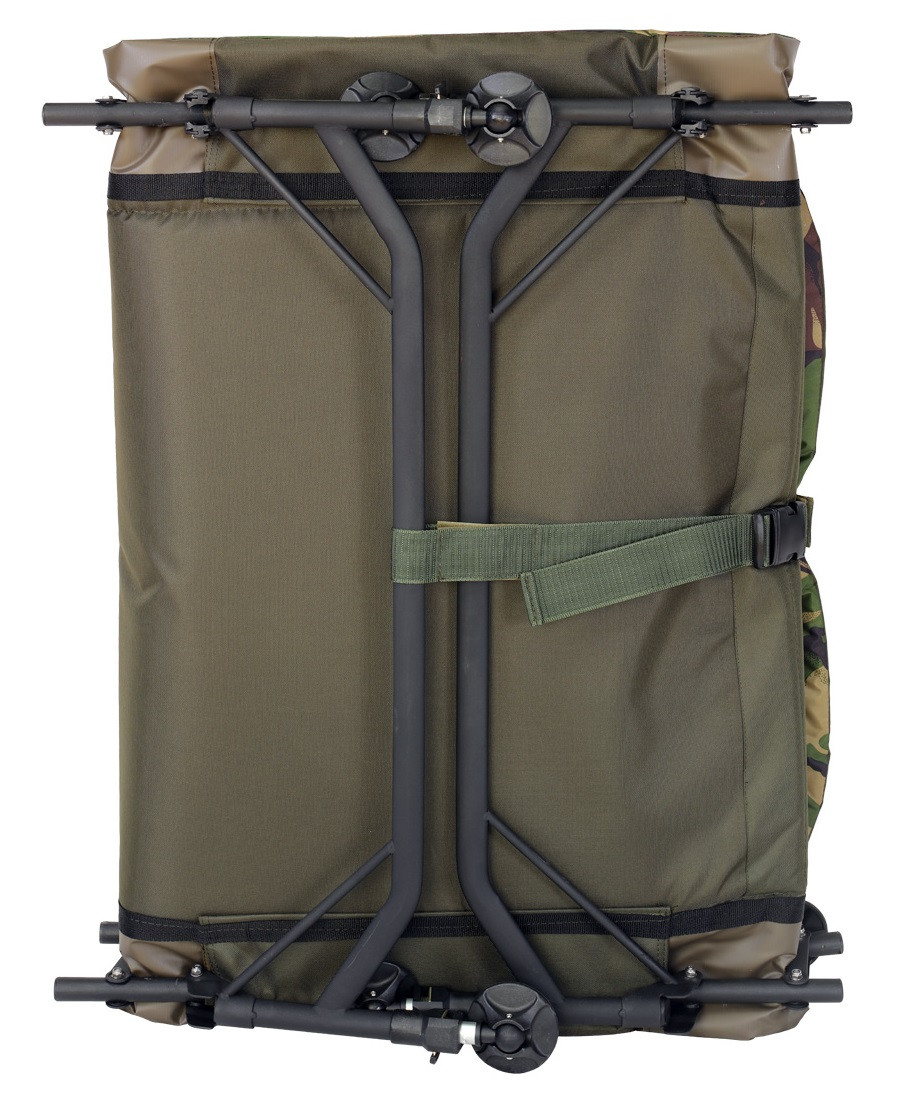 Polstrování matrace má termo izolační vlastnosti a chrání Vás před chladem, vlhkem v kombinaci s fleecovou středovou částí. Lemy lehátka jsou obšity odolnou tkaninou, která je v atraktivním kamuflážovém provedení. Ve spodní části matrace lehátka, v místech kde doléhá na kovové spoje konstrukce, je našitá zesílená pogumovaná tkanina bránící prodření.