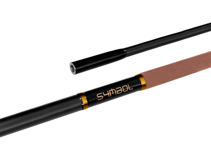 Vizuálne veľmi pôsobivá rukoväť z rady SYMBOL, ktorá sa vyznačuje excelentným pomerom cena/kvalita. Je vyrobená zo štíhleho štruktúrovaného uhlíka s dostatočnou pevnosťou na podobratie tých najväčších kaprov. Jednotlivé diely rukoväte do seba dokonale pasujú a pevný tŕňový spoj ich udrží spoľahlivo pokope za každých okolností. Rukoväť je v miestach uchopenia potiahnutá gumovou, protisklzovou vrstvou, ktorá je prijemná na dotyk a umožňuje pohodlnú manipuláciu. Pre dôkladné spojenie s hlavou slúži minimalistický konektor z nehrdzavejúcej ocele, ktorý je k rukoväti pripojený pomocou zosilneného vlepeného závitu.