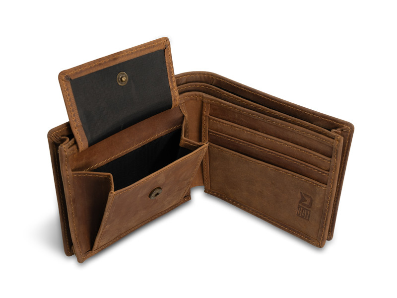 Štýlová kožená peňaženka vylepšená klasickým motívom kapra, ktorá bezpečne uchová vaše doklady aj hotovosť. Obsahuje niekoľko priečinkov na platobné a zákaznícke karty, zapínacie vrecko určené pre mince, prípadne žetóny a samozrejme nechýbajú dva priečinky pre uloženie bankoviek.