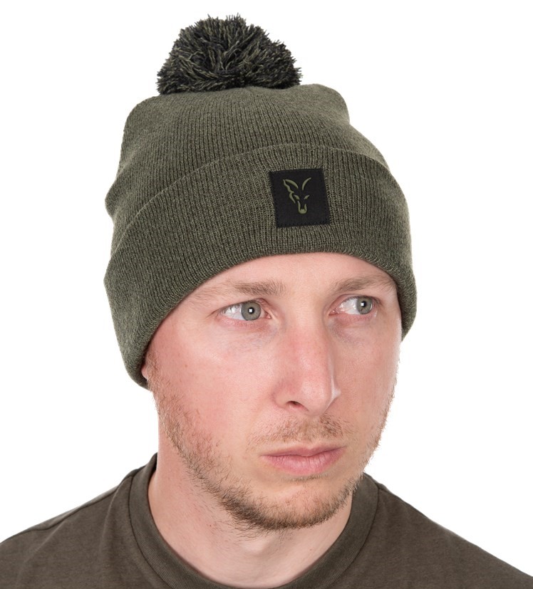 Čierne melírovaná čiapka s kontrastne oranžovým brmbolcom.