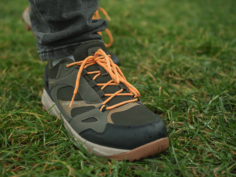 Topánky RIVEZ majú decentný outdoorový vzhľad v kombinácii olivovej, sivej a čiernej farby s výraznými šnúrkami, ktorý pri spojení s ich vlastnosťami tvorí spoľahlivého partnera do každého počasia, či už sa rozhodnete pre náročnú turistiku alebo ľahkú prechádzku v prírode. V balení nájdete aj náhradný pár šnúrok v tmavej farbe pre prípad, že uprednostníte decentnejší vzhľad.Pre rýchlejšie obúvanie je na päte navyše umiestnený praktický ťahačik.