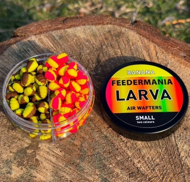 Plávajúca nástraha v tvare larvy – veľkosť SMALL (8–9 mm). Plávajúca nástraha v tvare larvy s nízkym vztlakom, ktorá háčik úplne nezdvihne, ale ho iba jemne odľahčí. Vďaka tomu sa nástraha správa prirodzene a ryby ju ľahšie nasajú. Vďaka výraznému dvojfarebnému prevedeniu a prémiovým anglickým arómam je veľmi atraktívna najmä pre menšie kapry. Zároveň jej unikátny skrútený tvar napodobňuje prirodzenú potravu, takže nepôsobí podozrivo ani na väčšie a opatrnejšie kapry.