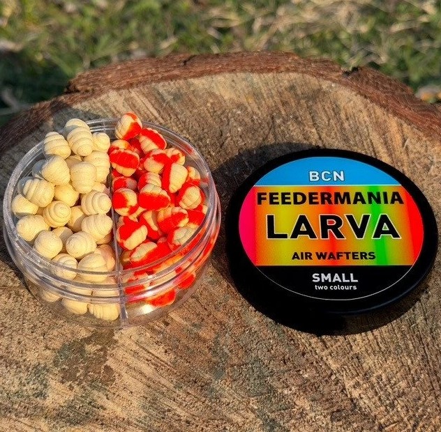 Plávajúca nástraha v tvare larvy – veľkosť SMALL (8–9 mm). Plávajúca nástraha v tvare larvy s nízkym vztlakom, ktorá háčik úplne nezdvihne, ale ho iba jemne odľahčí. Vďaka tomu sa nástraha správa prirodzene a ryby ju ľahšie nasajú. Vďaka výraznému dvojfarebnému prevedeniu a prémiovým anglickým arómam je veľmi atraktívna najmä pre menšie kapry. Zároveň jej unikátny skrútený tvar napodobňuje prirodzenú potravu, takže nepôsobí podozrivo ani na väčšie a opatrnejšie kapry.